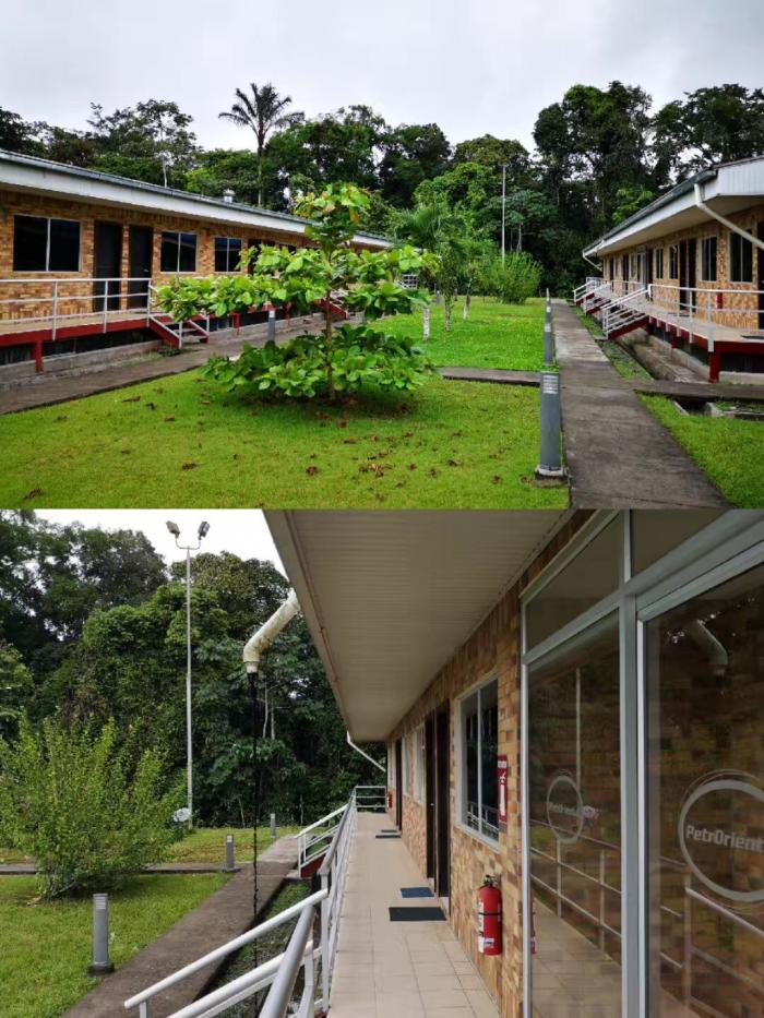 下午1:00到达南区油田营地。2006年中石油进入厄瓜多尔,营地经过两次整修改造,焕然一新。房屋建设标准及环境与周围热带雨林十分和谐,四排建筑的墙面分别以“火”、“土地”、“水”与“自然”命名。安第斯石油公司EHSS-CA部(Environment、Health、Security、Safety、Community Affairs,指环境、健康、安全、社区事务)经理邱明带队调研。