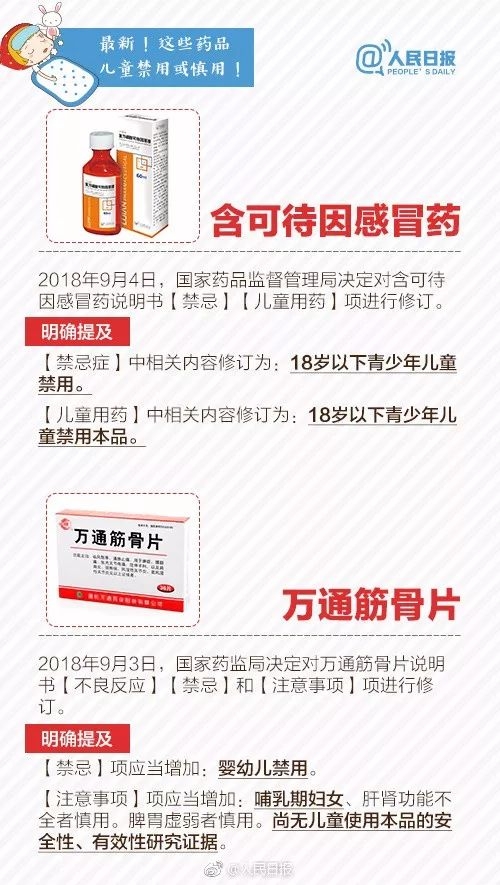 除了上述药物,还有很多我们耳熟能详的药物都涉及儿童慎用或禁用的内容,而且国家已对这些药品说明书进行了修订,家长们一定不能掉以轻心,请收好这份儿童禁用或慎用药“黑名单”!