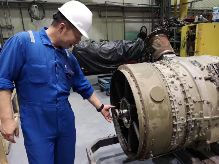 首先,油田的自备发电厂利用伴生气发电。电厂经理冯明辉介绍说,这所电厂使用的能源有60%来自伴生天然气,而另外40%则来自原油与柴油。原油在油、水、气分离过程中会产生伴生天然气,如果点“天灯”将对环境造成污染,而这所电站使用分离出的天然气发电,不仅保护了环境,还为油田生产提供了400万千瓦的电力供应。为此,安第斯石油公司对电厂新投资5000多万美元,以改造旧有发电设施。他带我参观了电厂修理车间,一台被拆下的Royal Royce 涡轮燃气发电机正在等待大修。