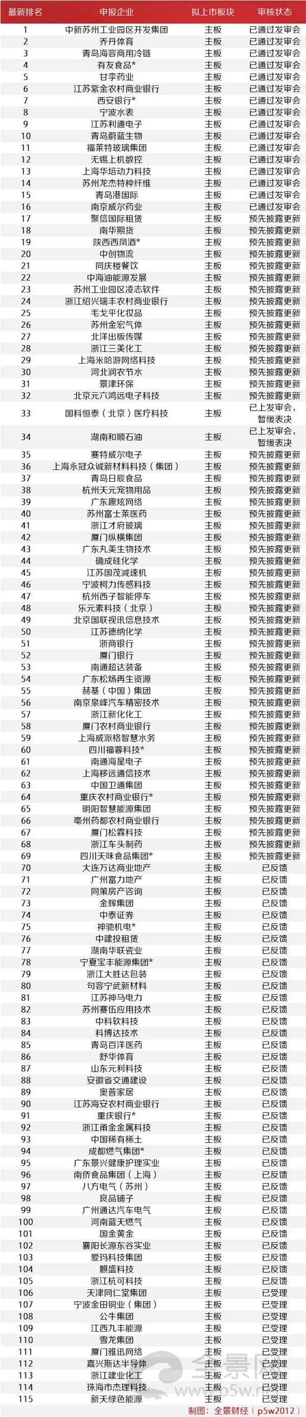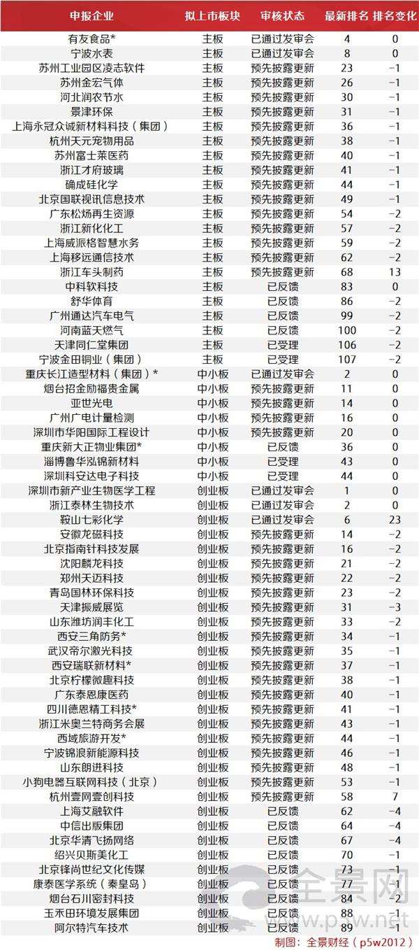 IPO正常审核企业最新排队情况: