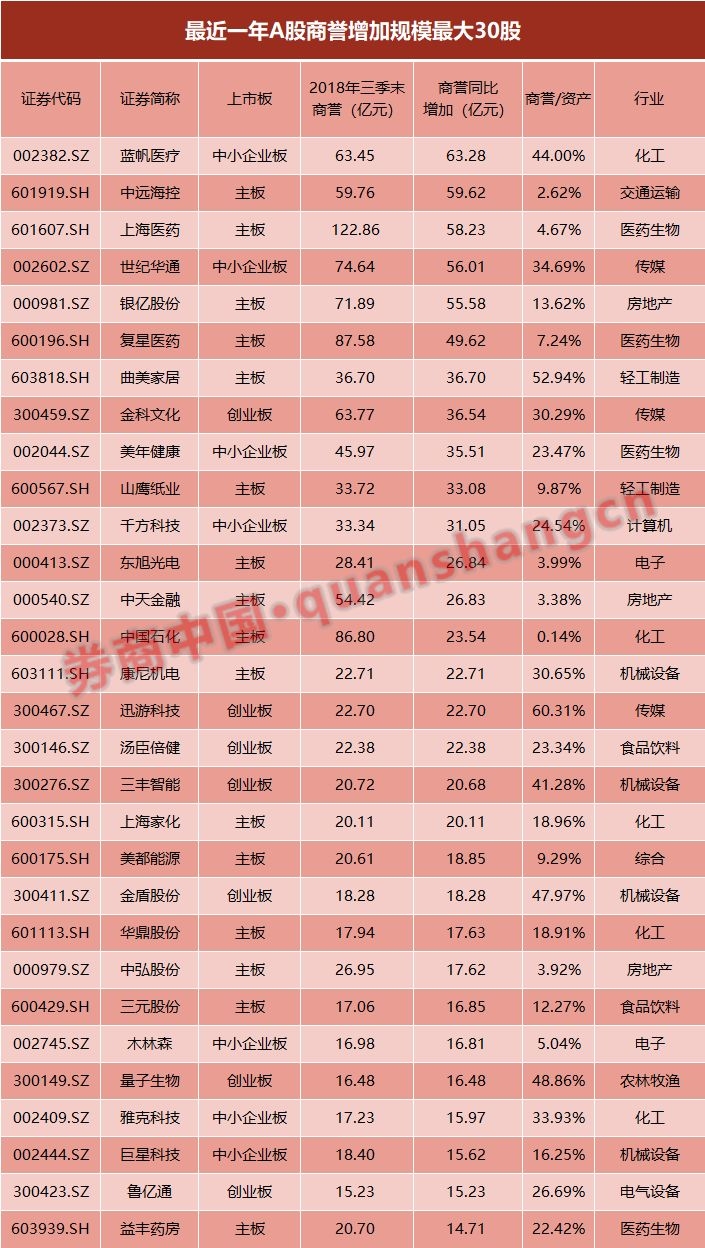 此外,商誉增加超50亿元的公司还包括中远海控、上海医药、世纪华通和银亿股份,较去年同期分别增加59.62亿元、58.23亿元、56.01亿元和55.58亿元,四家公司均是在2012以前上市。
