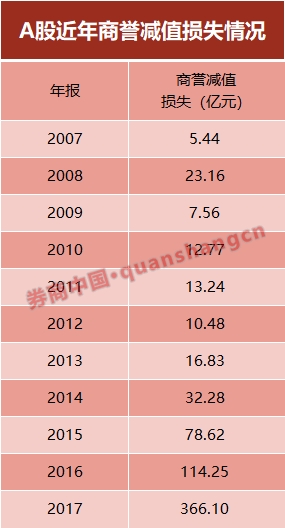 2016年年底,A股商誉突破万亿元大关,达到1.05万亿元;