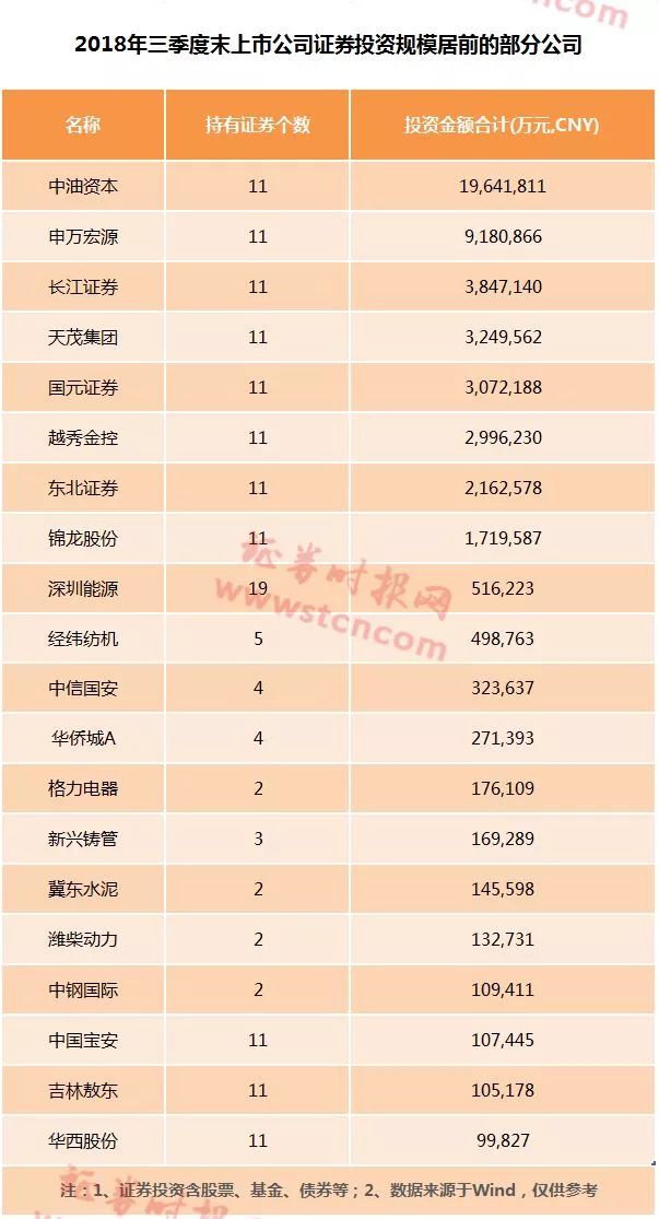 证券投资金额较大的公司所投资标的中还有不少国债、金融债等风险较低的品种,这类公司的证券投资总体风险比较可控。