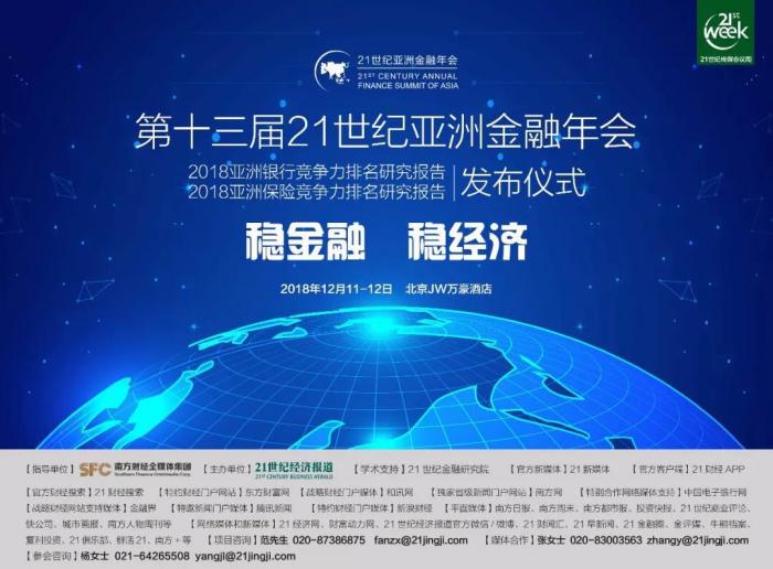 时间太瘦,指缝太宽。转眼,我们手中的2018余额已所剩无多。在感慨流光易逝之余,金融圈人士或许也会对接下来的日子多一份期待,创办于2006年的21世纪亚洲金融年会正如约而来。据悉,作为21世纪传媒会议周的第一场活动,第十三届21世纪亚洲金融年会将于今年12月11-12日在北京举行。