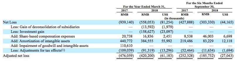 在截至2017年3月31日和2018年3月31日的一年内,蘑菇街的调整后净亏损分别为人民币4.761亿元和人民币4.202亿元;在截至2017年9月30日和截至2018年9月30日的6个月内,蘑菇街的调整后净亏损分别为人民币2.523亿元和人民币1.857亿元。