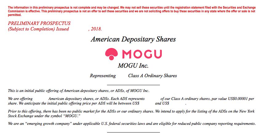 美国东部时间11月9日,蘑菇街母公司美丽联合集团向SEC(美国证券交易委员会)递交了IPO(首次公开招股)申请文件,申请在纽约证券交易所挂牌上市,拟筹集最多2亿美元资金,股票代码为“MOGU”。主承销商为摩根士丹利、瑞信和华兴资本。