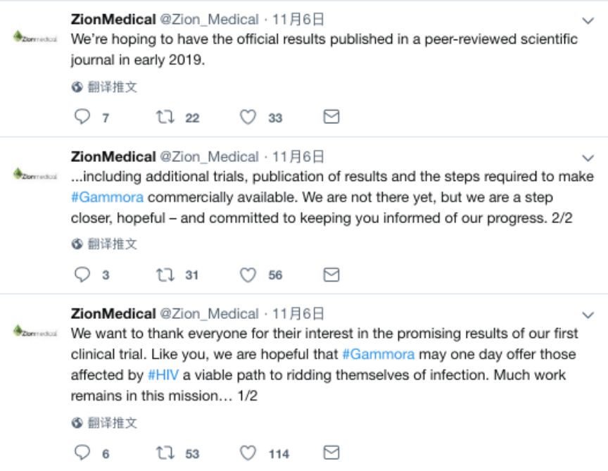 面对这些质疑声,锡安医疗也在公司的推特上表示:“关于珈摩拉的研发仍有很多工作要做。我们还没有到达那一步,但我们距离目标更近了,并且充满希望——并承诺随时向您通报我们的进展情况。我们希望官方的研究结果能在2019年早些时候在同行评议的科学期刊上发表。”