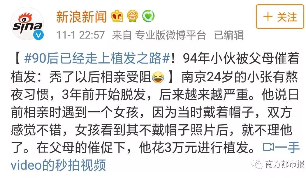 扎心!90后已成植发主力军?网友:没想到年纪轻轻就存够了钱