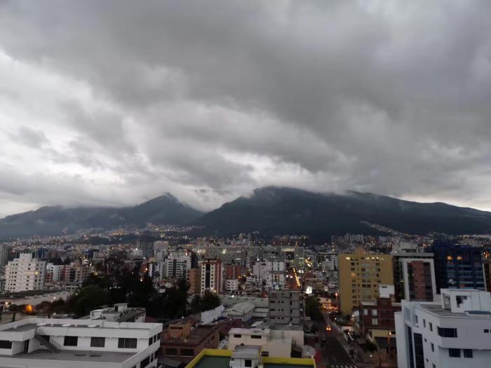 晚上六点三十分回到家,此时安第斯山脉万里长云,基多城已经亮起星星灯火。