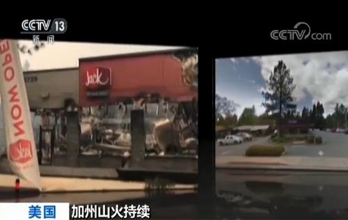 有美国媒体给出了一组天堂镇部分地方前后图片对比,直观地展示了小镇遭到大火破坏的严重程度。