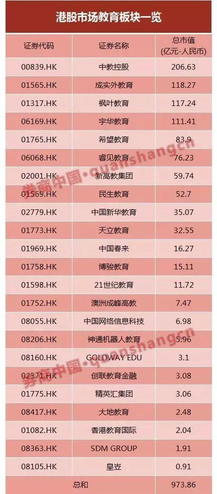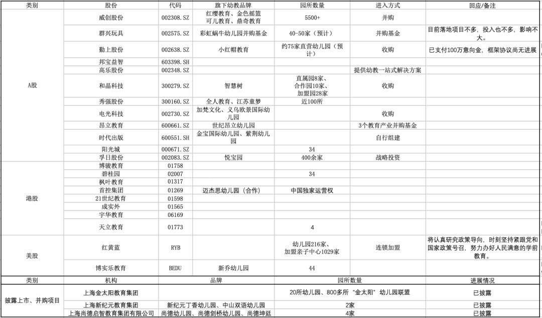 下表为涉及幼儿园的A股、港股、美股上市公司全名单: