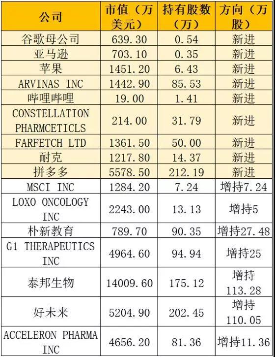 与此同时,高瓴新进谷歌、苹果、亚马逊等9家企业,增持好未来、朴新教育等7家企业。