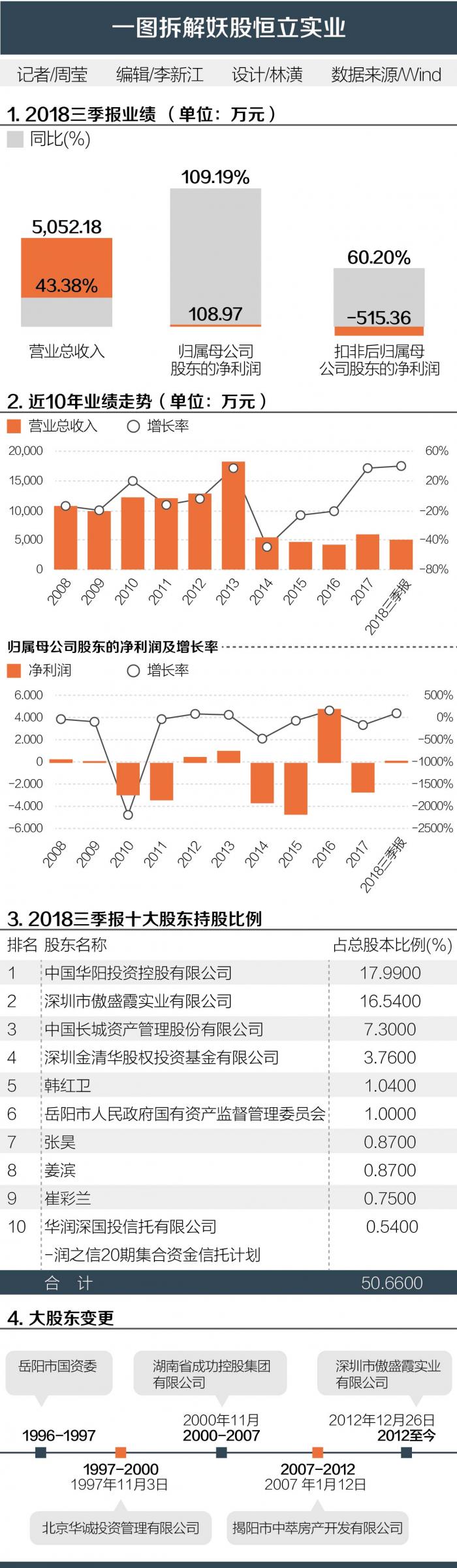 根据恒立实业三季报显示,公司2018年前三季度扭亏为盈,实现归属于上市公司股东的净利润108.97万元,但主要是靠清算子公司上海恒安获得的1513.15万元非经常性损益,扣除非经常性损益后的净利润为-515.36万元。