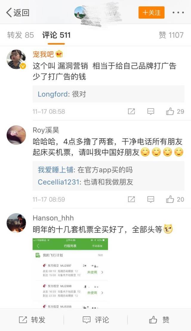 北京飞上海只要70元?东航系统凌晨故障“发福利”,网友上厕所抢到票省万元
