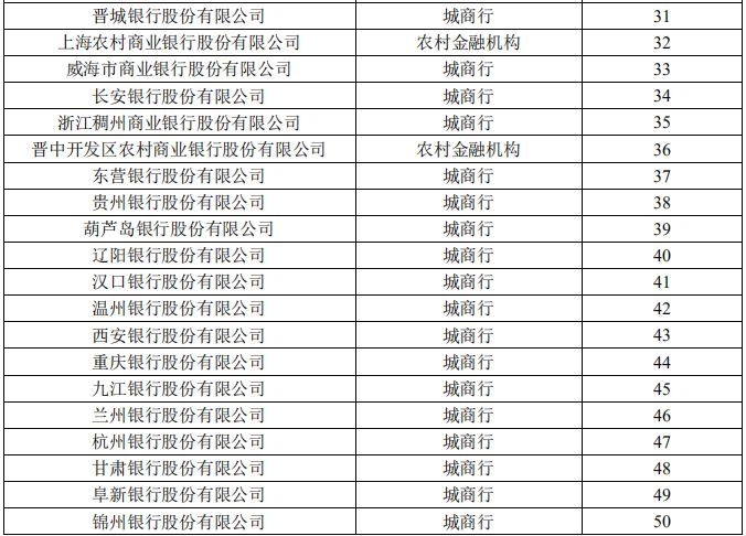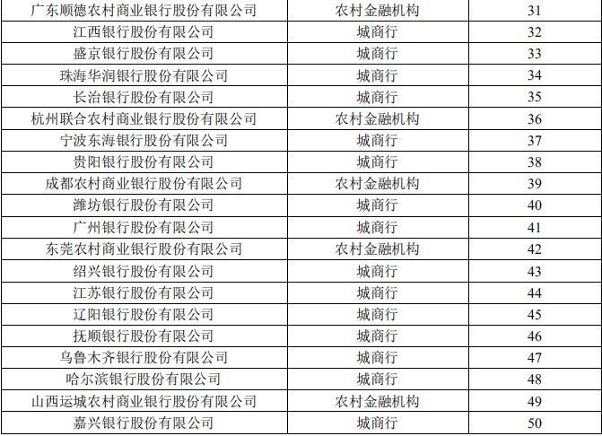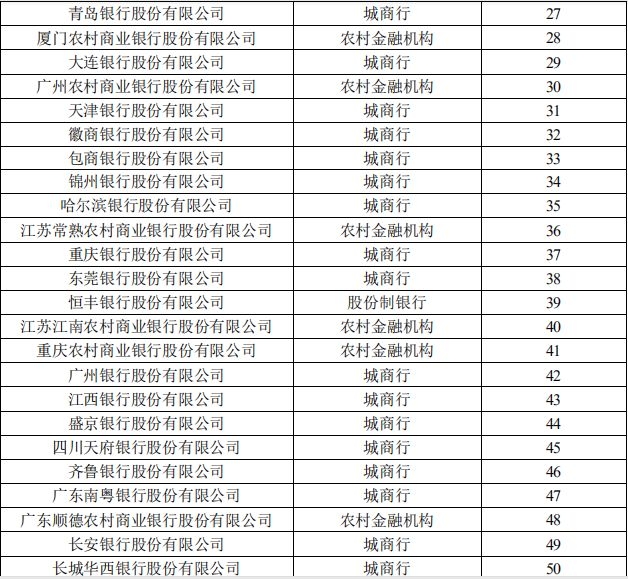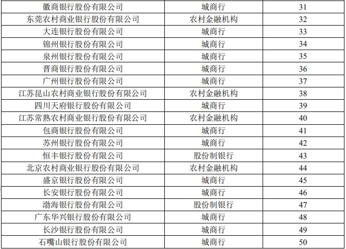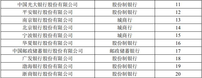 前12名中的另8个席位均被股份制银行占据,唯一剩余的一家国有银行交行,屈居第13位。