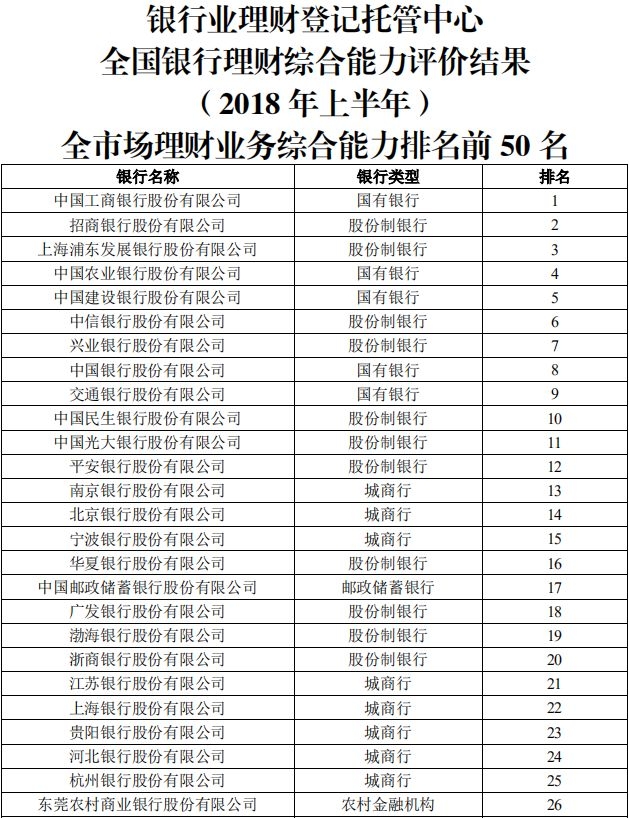 11月16日,银行业理财登记托管中心发布了《全国银行理财综合能力评价报告(2018年上半年)》。