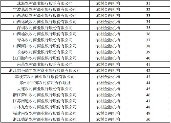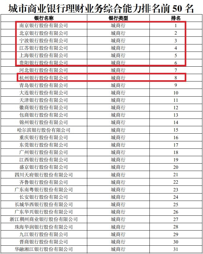 除了国有大行及股份制银行,进入全市场理财业务综合能力前50名的还有:邮储银行、25家城市商业银行、7家农村金融机构。