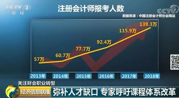 不仅是管理会计被热捧,传统财务会计的高端职位也继续受追捧。今年,报考注册会计师的人数也创下了历史新高,超过了139万人。