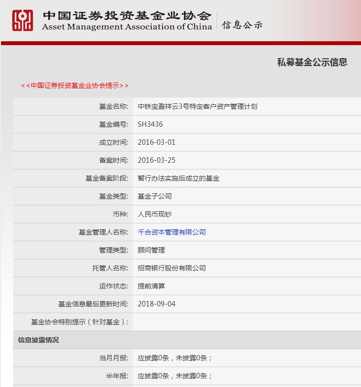 令火山君惊讶的是,“一哥”王亚伟也未能逃脱清盘的厄运,据基金业协会数据显示,王亚伟旗下的中铁宝盈祥云3号特定客户资产管理计划提前清盘。