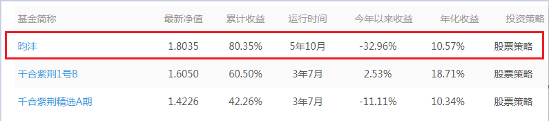 火山君还注意到一个有趣的现象,单从今年来看,千合资本旗下的千合紫荆系列产品的市场表现稍微好点,在金斧子展示业绩数据的产品有11只,今年以来平均亏损为7.2%,其中,千合紫荆精选A期收益为亏损11.11%,千合紫荆1号收益为亏损9.12%,千合紫荆精选B期收益为亏损11.1%,千合紫荆精选D期收益为亏损11.10%,千合紫荆精选C期收益为亏损11.12%,千合紫荆精选E期收益为亏损11.10%,千合紫荆精选G期收益为亏损11.10%,千合紫荆精选F期收益为亏损11.11%。而这些产品的基金经理是崔同魁。