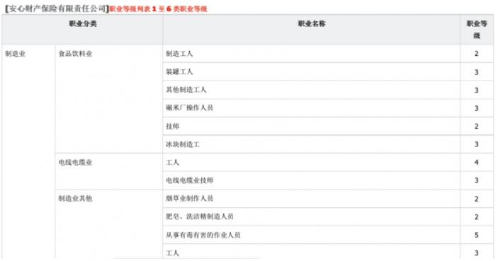 根据保险条款,这份组合保险针对年龄在18-60岁,职业等级为1-3类的被保险人。所谓1-3类职业,包含了大多数行业的大多数职位,比如下表: