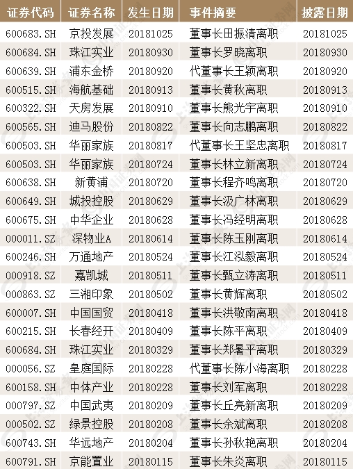 截至目前,2018年A股地产公司的董事长离职人数已达24人(见下表)。而在过去三年中,2017年为25人,2016年为19人,2015年为28人。