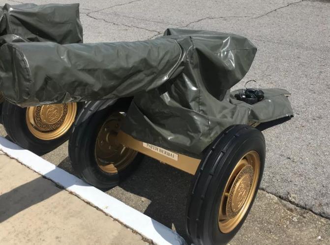 △穿着防雨罩的礼炮。(央视记者郭晗光拍摄)