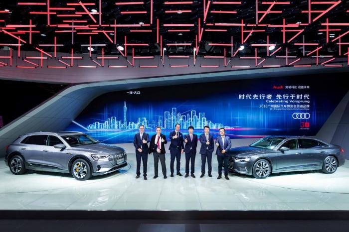 2018年11月16日,第十六届广州国际汽车展览会已经正式开幕,一汽-大众奥迪以“时代先行者,先行于时代”为主题,携旗下二十余款重磅车型亮相广州。全场景智能豪华C级旗舰座驾全新奥迪A6L的全球首秀,掀起了全场高潮,再次展现中国豪华车市场开拓者形象。奥迪首款纯电动SUV奥迪e-tron的亮相,更是开创了豪华电动SUV市场全新格局。