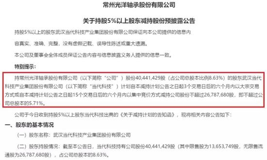 就在光洋股份连续大涨、气势如虹之时,一份持股5%以上的股东减持股份预披露公告晚间随之而来,非常“精准”。