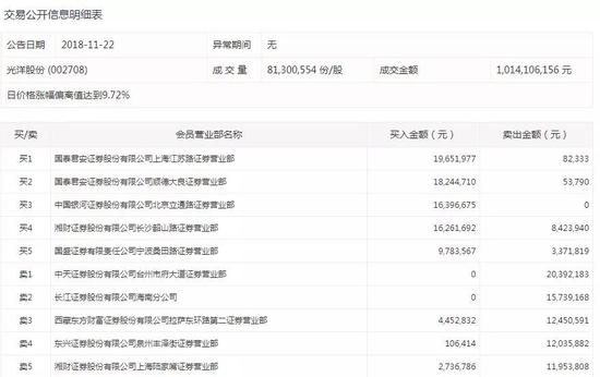光洋股份近日连续疯涨,背后抢筹的也多为游资。11月8日以来的盘后龙虎榜显示,买卖前五席几乎均为券商营业部。