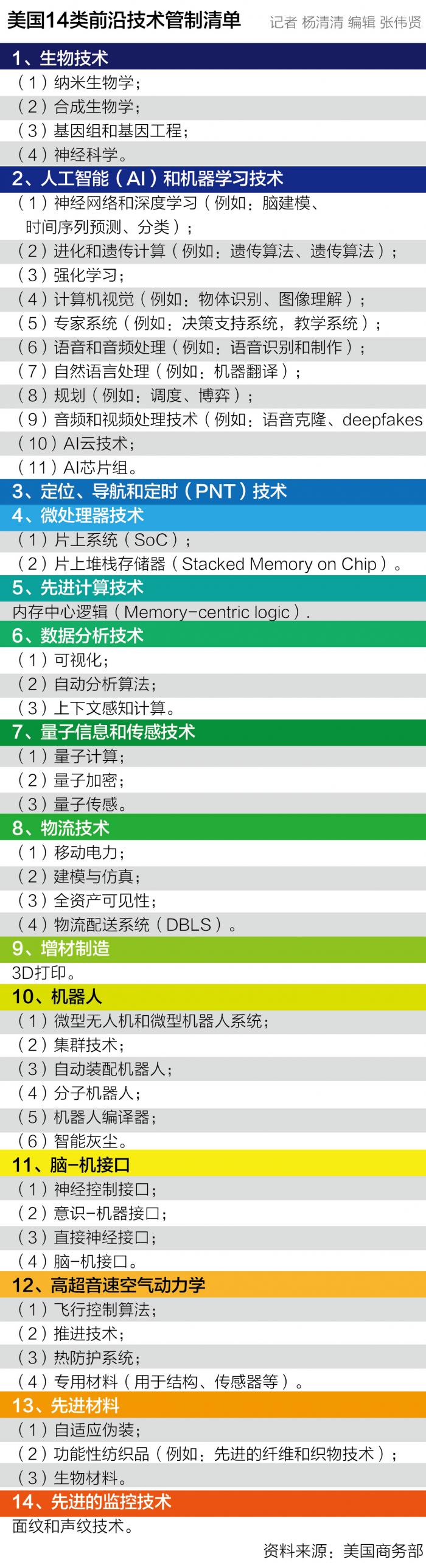 而这次,美国限制出口的14类新技术全都是未来科技发展的核心方向,“谁能控制这些技术,必能获得未来全球产业链中最高端、最核心部分的控制权。所以,美国希望通过限制出口以维护其未来在科技制造领域的领导地位。”吴奕捷表示。