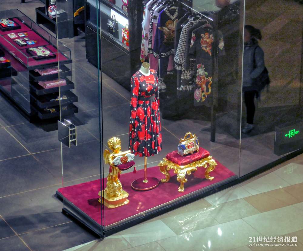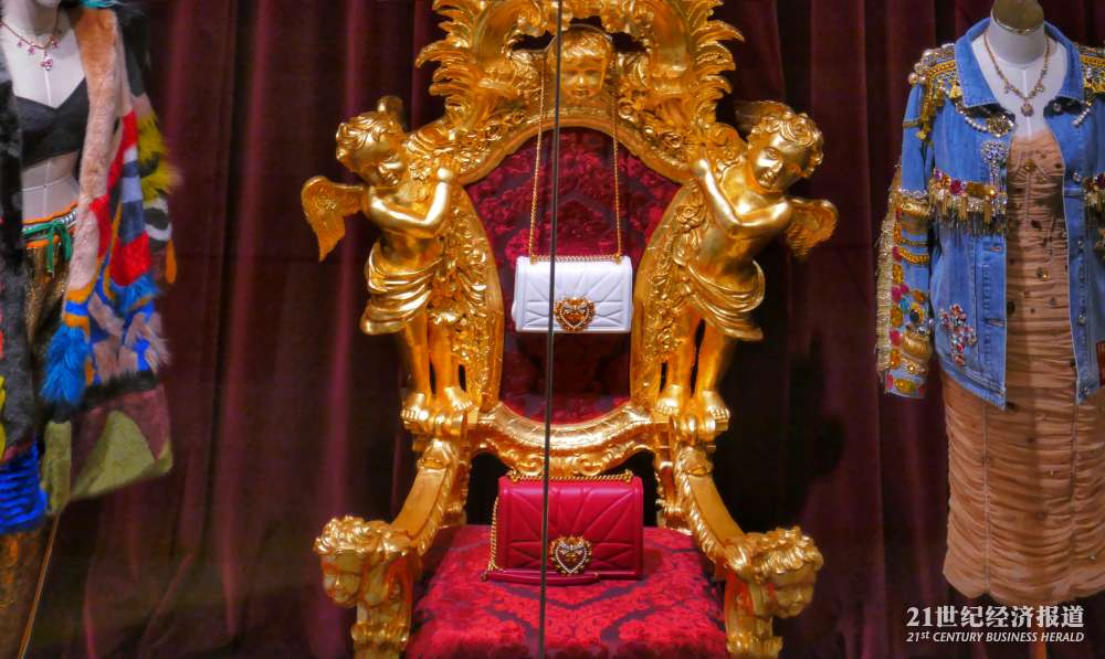 D&G橱窗里的箱包展示。22日,D&G在社交平台再度发表声明称其公司未有歧视中国人言行,大秀取消,对品牌和所有工作人员来说“都很不幸”。全文并无任何道歉之意。