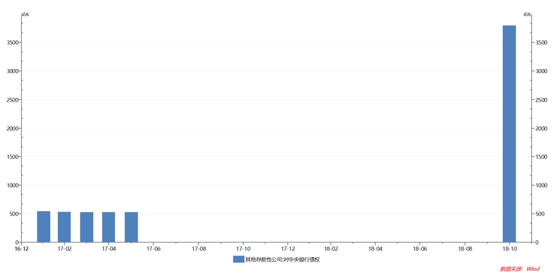 一个是其他存款性公司资产负债表“对中央银行债权”科目。该科目10月环比增加3800亿,为年内首次发生变化,前几个月一直保持在0。该科目为持有央行发行的债券及其他债权,指向央行可能进行正回购操作。
