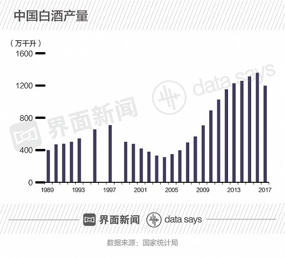 到了现代,中国人对白酒的热爱有增无减。1989年,中国白酒年产量不足400万千升;到2016年,白酒年产量达到顶峰,为1358万千升。很多时候,中国人喝的不仅仅是酒,还有情怀。