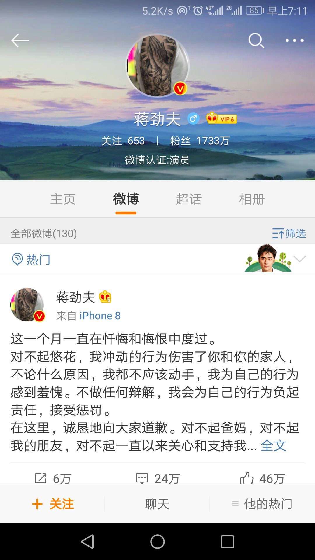 对此,蒋劲夫在微博回应:一直在忏悔和悔恨中度过。