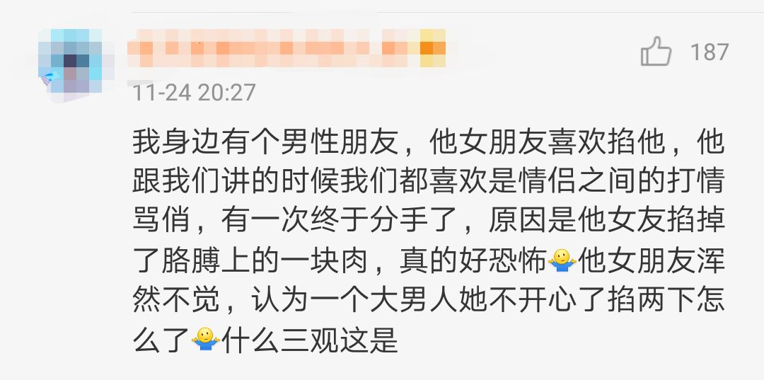 结果这一观点被其他网友回怼,“男的活该被打吗?”↓↓↓