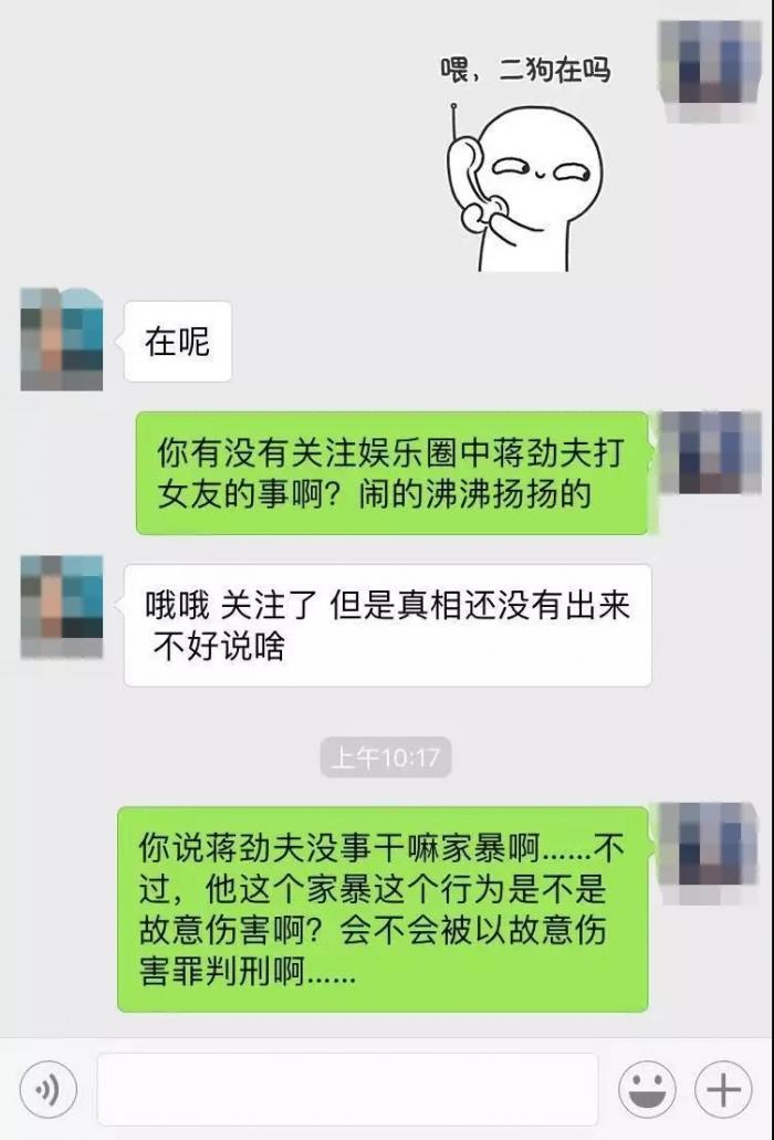 网上有一种观点认为蒋劲夫和其女友未结婚,非家庭成员关系,所以男友打女友并不是家暴,而只是故意伤害行为。