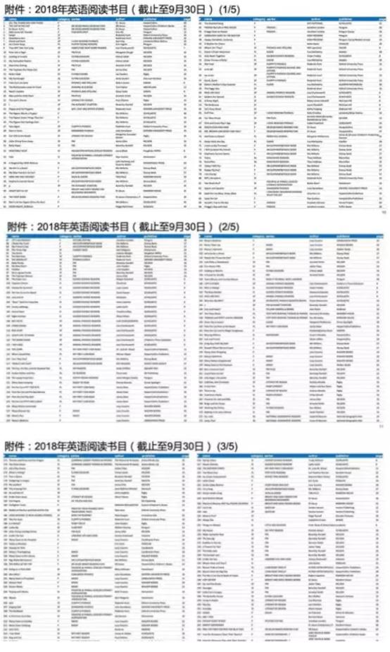 这是他2018年英语阅读书的目录: