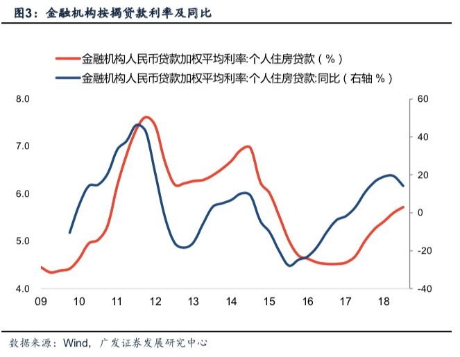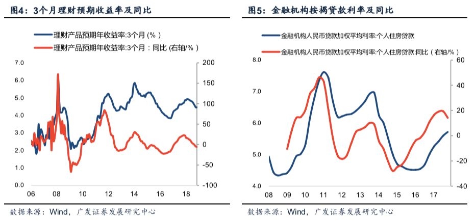 宏观层面上,宽货币传导至地产销售的路径可总结为三个阶段:第一,央行通过降准+MLF+非标回表引导狭义流动性宽松,流动性淤积压低市场短端利率,R007以及同业存单等货币市场基准利率一度刷新三年新低;第二,理财产品等银行负债端成本进一步下降,年初至今3M理财产品预期收益率下降逾40BP,负债端流动性充裕导致银行降低资产预期收益;第三,银行风险偏好修复下,按揭贷款等优质资产受到追捧。