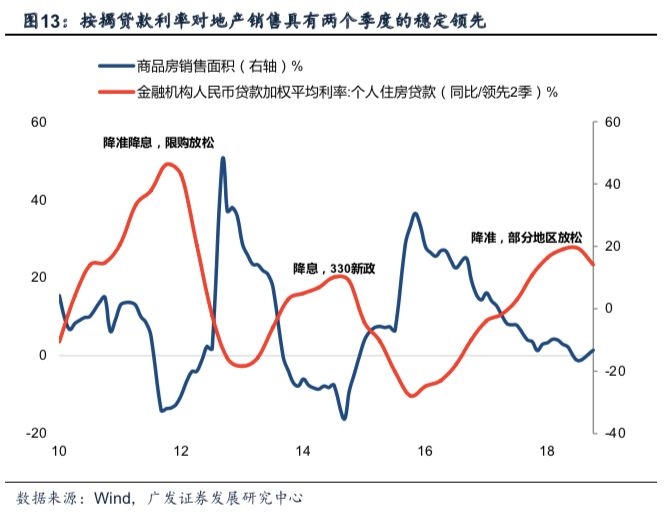 按揭利率领先于地产销售,按揭利率下行是销售周期将来见底的驱动因素。