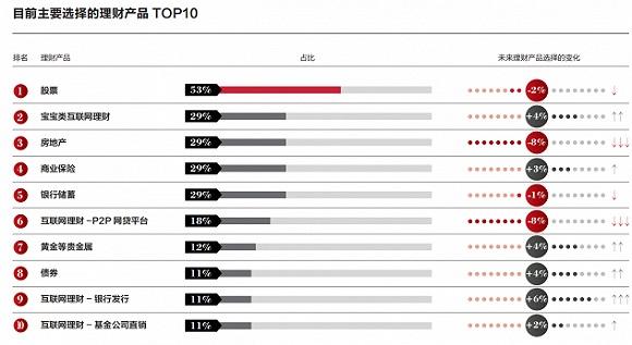 在理财产品配置上,新中产选择以传统型理财产品为主,新型互联网金融为辅。因受宏观政策及市场环境的直接影响,他们未来在房地产和P2P网贷的增配意向减弱。