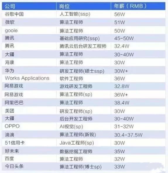 对于学生而言,这意味着人工智能相关专业则存在较广阔的就业前景与可观的薪资待遇。最新数据,在2018年校招中人工智能岗位最高年薪已超50万!
