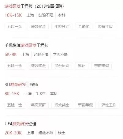 游戏产业的前景有多大,看看国内王者荣耀、绝地求生等玩家有多少就知道了。网易游戏的校招中,游戏研发师的平均年薪已经到了32.8万元。在招聘网站中查询可知,研发相关人员月薪已在平均水平之上: