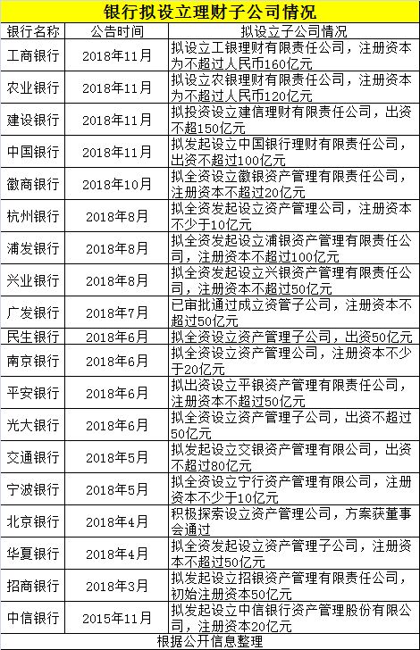 在资管新规明确要求商业银行应当设立子公司开展资管业务前后,多家商业银行纷纷公告,拟设立相关的资管子公司。