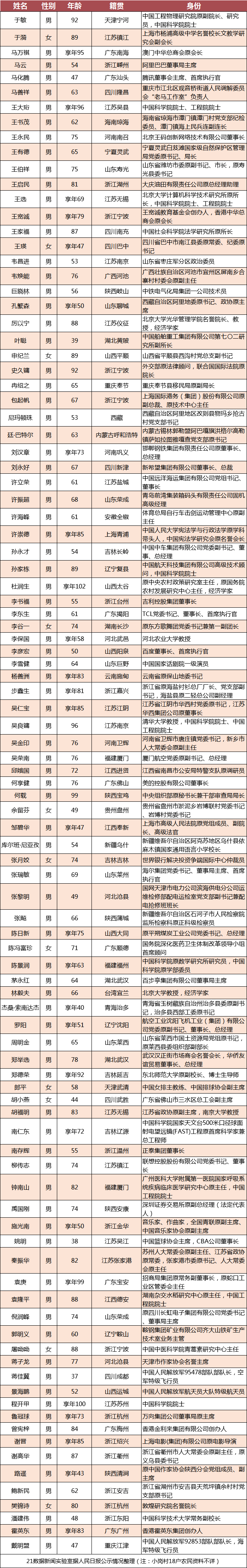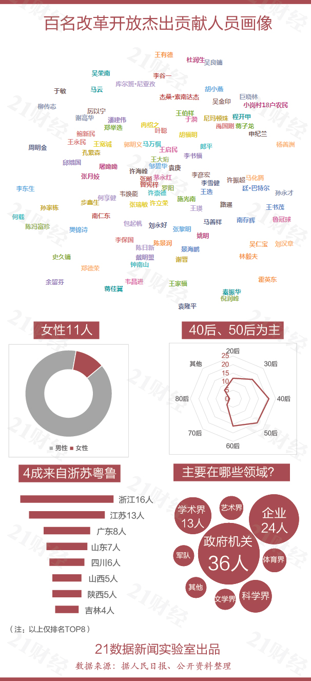 梳理这100人的背景资料,21数据新闻实验室还发现: