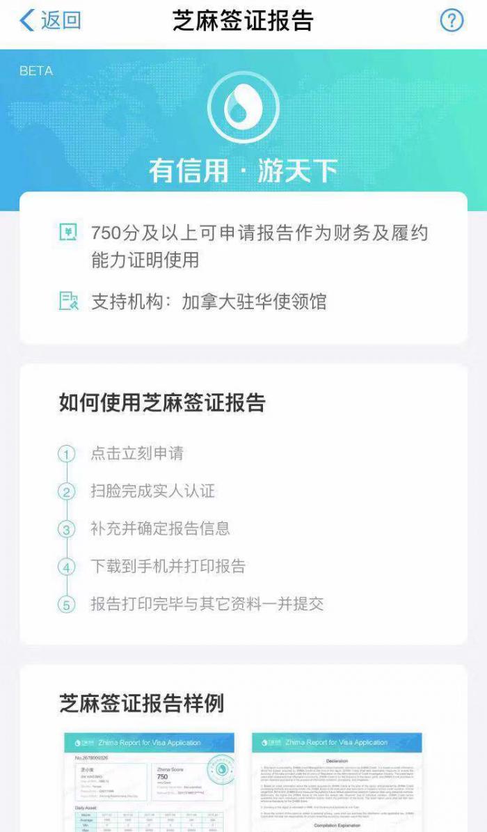 申请加拿大签证可以不用打印流水了!芝麻信用750分可用作财力证明