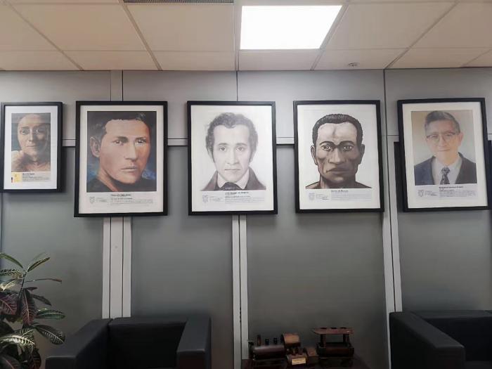 此前访问厄瓜多尔政府部门时,发现进门处都挂有5张肖像。坎帕纳部长的新闻顾问Patricio介绍说,他们都是在厄瓜多尔历史上具有纪念意义的人物,包括女权主义者、本土英雄、爱国者总统、非洲奴隶解放的领导者以及厄瓜多尔最重要的解放神学家。