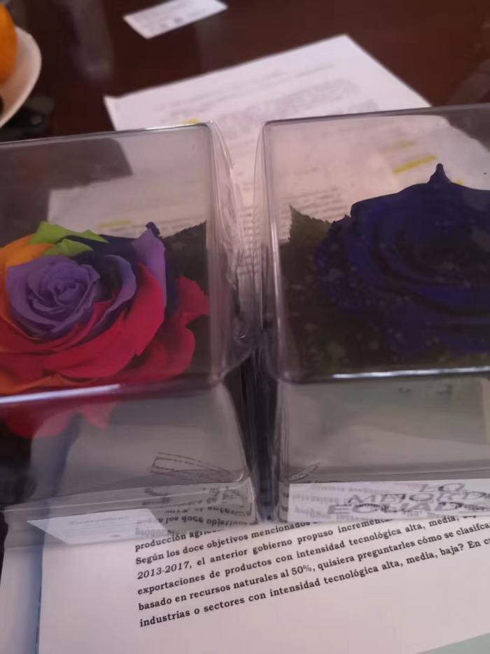 临走时,坎帕纳部长送了厄瓜多尔标志性的永生玫瑰花,作为礼物。