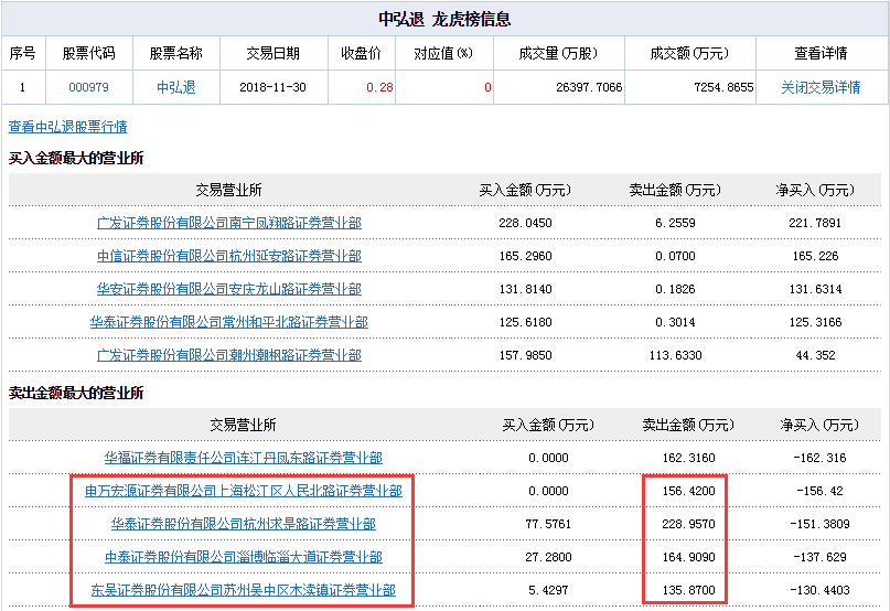 不过昨日占据买入榜前4名的华泰证券杭州求是路、中泰证券淄博临淄大道、申万宏源证券有限公司上海松江区人民北路和东吴证券股份有限公司苏州吴中区木渎镇证券营业部今日合计卖出686.16万元。