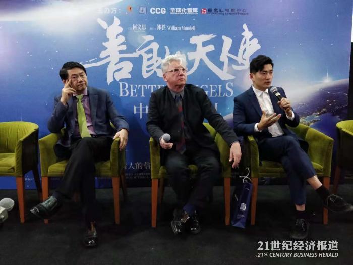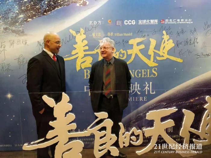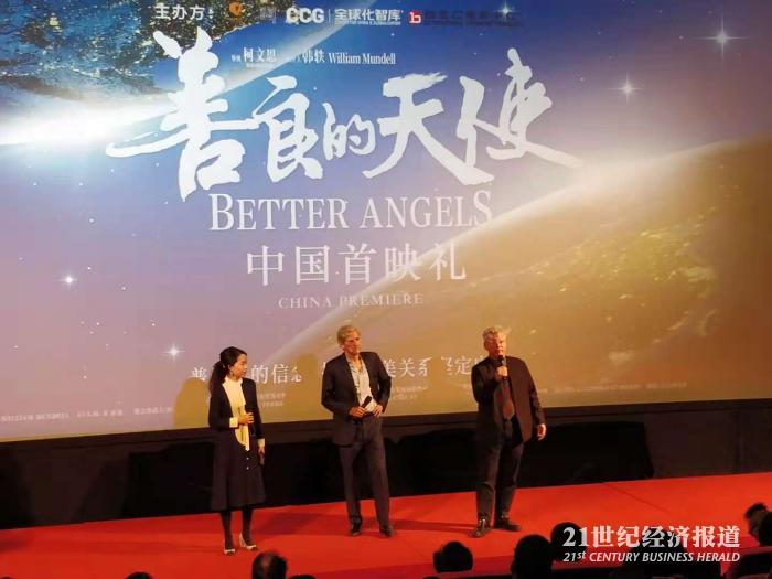 11月24日,全球化智库(CCG)联合东注文化,在北京举办《善良的天使》国内首映会暨中美关系的未来研讨会。美国驻华大使特里•布兰斯塔德(Terry Branstad)出席了活动。活动之后,电影主创团队在记者会上回答了《21世纪经济报道》的提问。